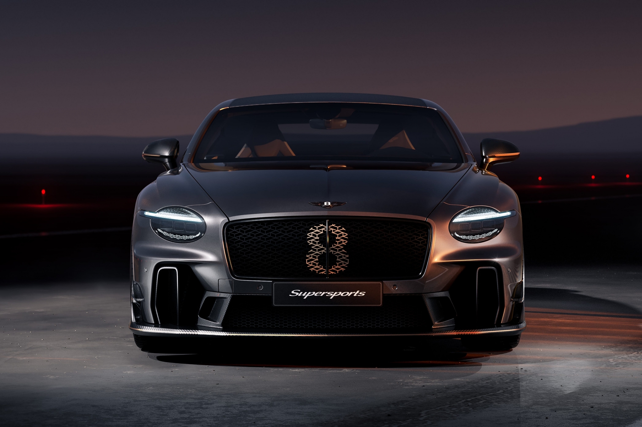 Ещё одна деталь — большой логотип «8» прямо по центру решётки радиатора, который, по всей видимости, можно «отключить» при желании (в рамках обширных опций кастомизации Bentley).