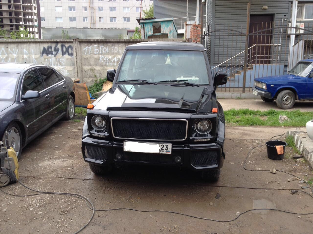 Внедорожник получил круглые передние фары, прямоугольную решетку радиатора, новый бампер в стиле G63 AMG, новый капот и другие передние крылья. Финальным штрихом стали указатели поворота, расположенные сверху на крыльях.