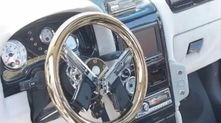 Иногда владельцы автомобилей в попытках выделиться доходят до полнейшего абсурда. Посмотрите, на этот руль. Его спицы сделаны из двух пистолетов. Это как же надо не любить свой автомобиль и любить оружие, чтобы сотворить такое?