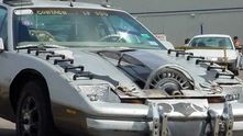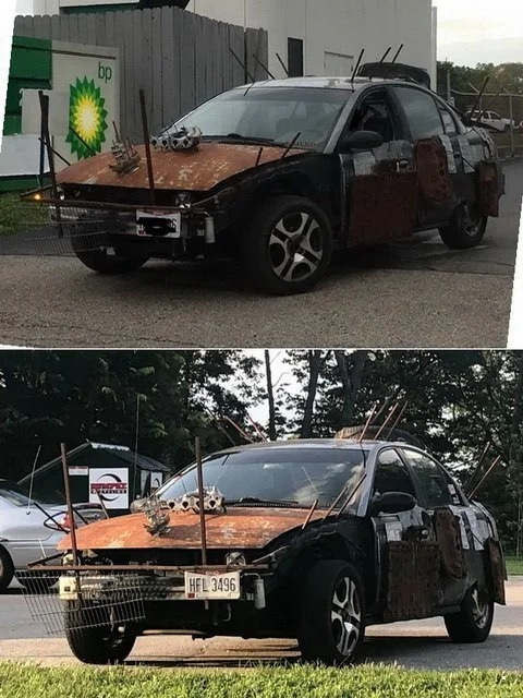 Автомобиль для зомби-апокалипсиса или экстремальный рэт-род? Не знаю, что это, но выезжать на нём на улицы опасно для здоровья пешеходов. Автомобиль утыкан торчащими ржавыми прутьями. Представляете, что может быть, если он наедет на пешехода?