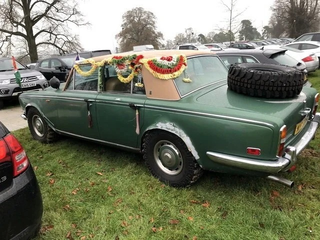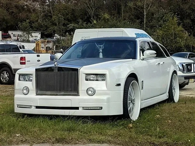 Да, это Rolls-Royce. Вернее, когда-то им был, пока его не превратили в версию на зубастых колесах. На переднем крыле установили фару-искатель, а на багажнике закрепили запаску. Но самое ужасное - это вручную раскатанные задние колесные арки.
