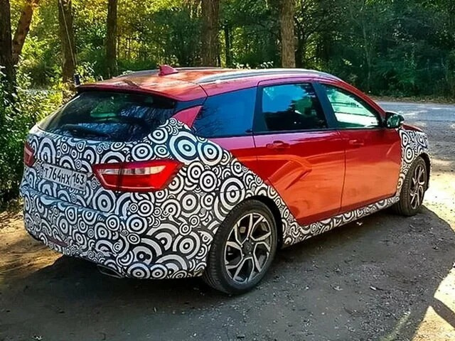 Владелец этого универсала Lada Vesta знает, как привлечь всеобщее внимание. Надо обклеить его пленкой, похожей на ту, которую используют автопроизводители, когда проводят тестирование прототипов будущих моделей на дорогах общего пользования.