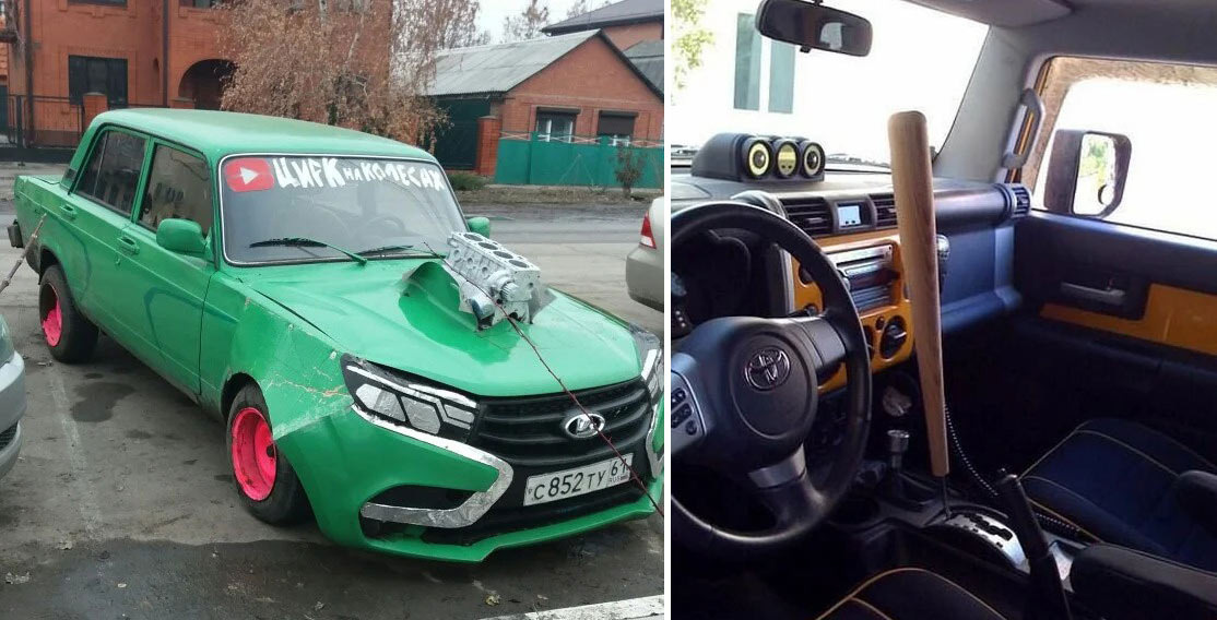 Владелец этого внедорожника Toyota FJ настолько любит бейсбол, что решил заменить селектор рычага автоматической коробки передач на настоящую биту. Уверен, что пользоваться такой крайне неудобно, но ведь главное стиль, правда?
