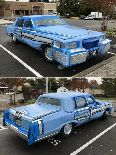 Бедный Cadillac. Он попал в руки к маньяку автотюнинга, который сотворил с ним что-то совершенно ужасное и унизительное. Вы только посмотрите сколько клейкой ленты было использовано, чтобы "доработать" внешний вид неплохого автомобиля.