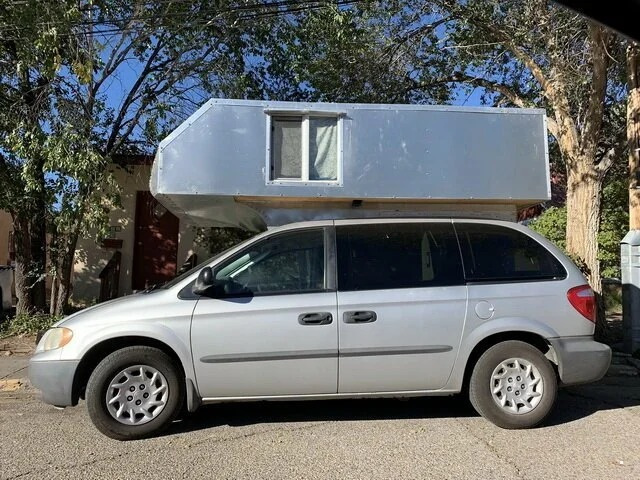 Всё своё вожу с собой! Видимо как-то так размышлял владелец минивэна Chrysler, когда устанавливал на крышу автомобиля самодельный домик из алюминия. Выглядит он, конечно, совершенно не к месту, зато в нём можно заночевать, если жена выгнала из дома.