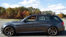 Подвеска занижена на пружинах H&R, спереди стоят тормоза уровня E90 M3, колёса — Volk Racing TE37SL. Внешне универсал тоже «подтянули» под M-стиль: бампер М3, крылья E90 M3, пороги, задний бампер от M, диффузор, капот из карбона, затемнённые отражатели и чёрные решётки радиатора.