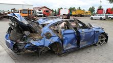 В Германии произошла ужасная авария. С автобана на скорости 300 км/ч слетел BMW M5. Немецким автомобилем управлял 60-летний водитель, который к счастью остался жив.