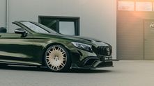 Все хромированные элементы затемнили, а 21-дюймовые колеса цвета латуни придают кабриолету внешность более дорогого Maybach. Brabus также установил индивидуальные дверные пороги с подсветкой, карбоновые подрулевые лепестки, эксклюзивные напольные коврики и несколько других функций.