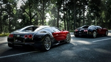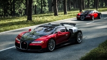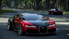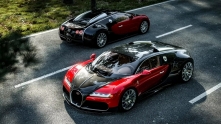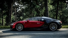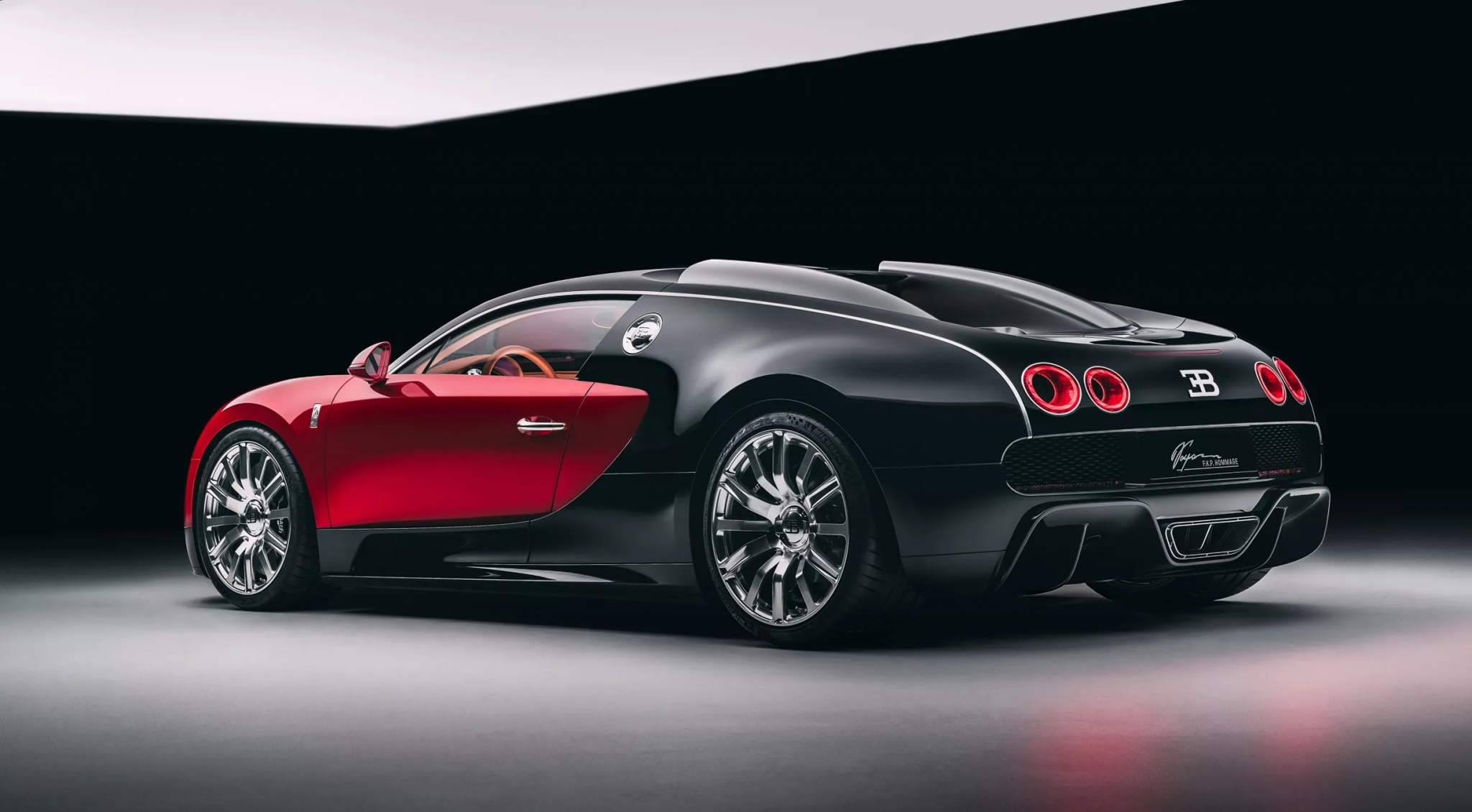 Красно-чёрная окраска напрямую отсылает к концепту Veyron 2003 года, но современные технологии окраски добавляют глубины. Красный цвет нанесён поверх серебряной базы, а чёрный — это открытый углепластик с тонированным лаком. Более крупные колёса и современные шины Michelin завершают обновлённый образ.