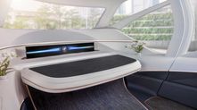 Салон выглядит еще более современно, чем экстерьер. Он имеет широкие возможности трансформации и делает акцент на максимально открытое пространство. Так, здесь полностью отсутствует центральный тоннель, а остекление выполнено в круговую. Зато нашлось место для небольшого чайного столика и трех дисплеев: 30-дюймовый прямо перед водителем, встроенный в руль сенсорный, а также один проекционный.