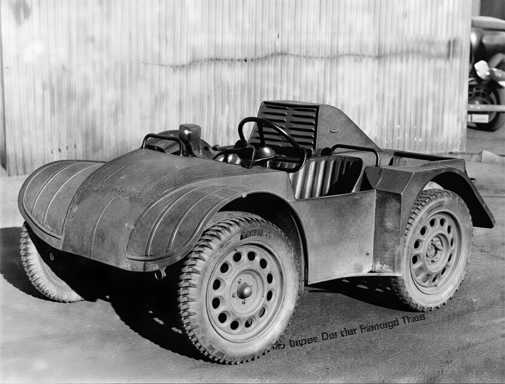 Меня не перестаёт поражать, насколько сильно эта машина ощущается прямым предшественником багги вроде Meyers Manx и бесчисленных клонов на укороченной платформе VW, которые появились позже. Дизайн невероятно похож: базовые пропорции и форма практически идентичны — просто один выполнен из тонкого металла, а другой из стеклопластика.