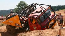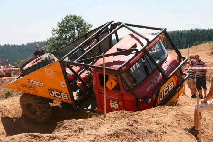 В трак-триале все решает не скорость, а чистота прохождения маршрута и возможности грузовика, способного проехать самые сложные препятствия, подготовленные организаторами, да еще и не сбить конусы.