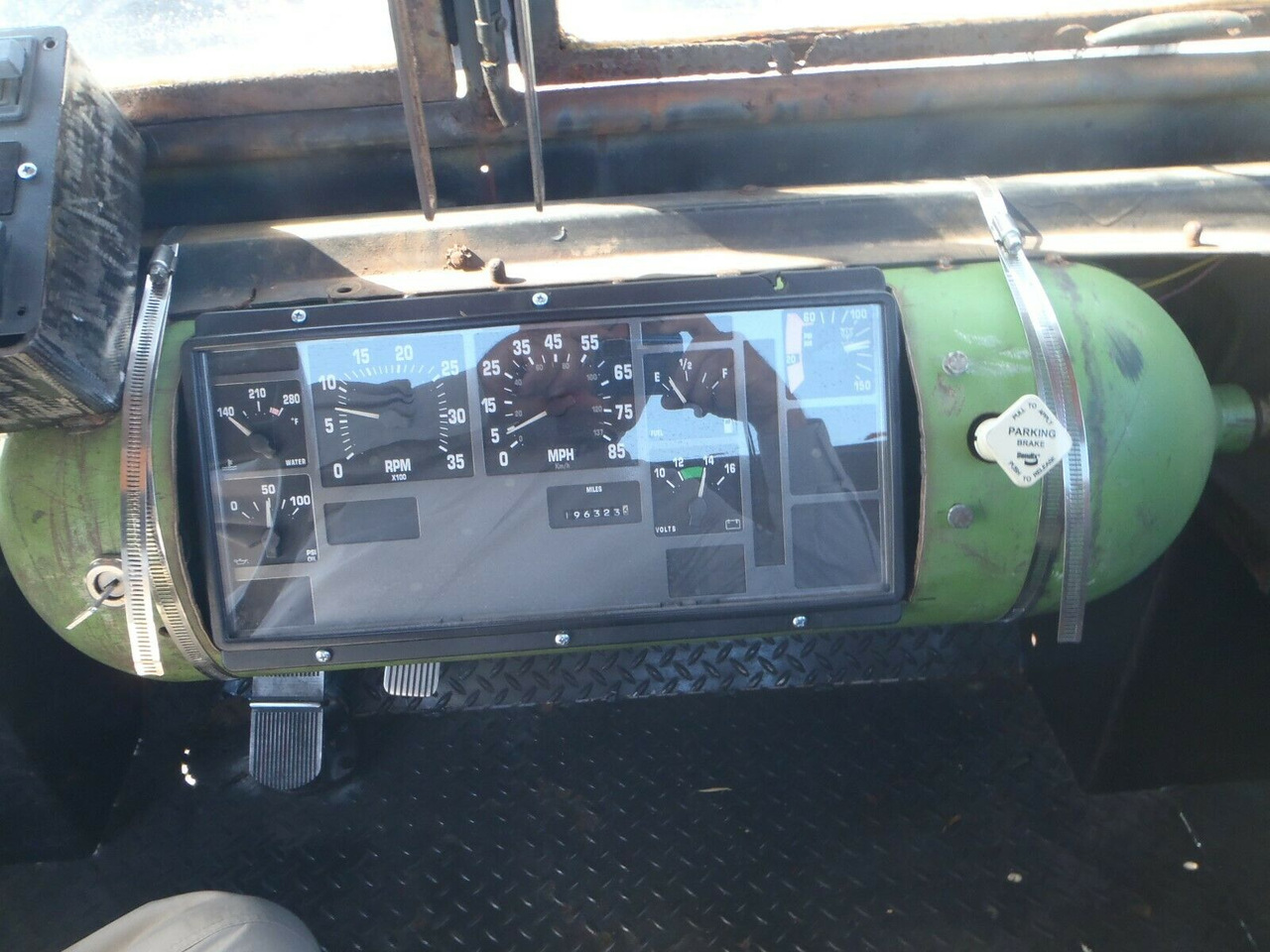 Интерьер максимально спартанский, но имеет приборную панель от автобуса, установленную в старом газовом баллоне. По словам продавца, тут также есть камера заднего вида, чтобы можно было наблюдать за восхищенными взглядами людей. Цена продажи — 23000 долларов США, или 1,5 миллиона рублей.