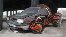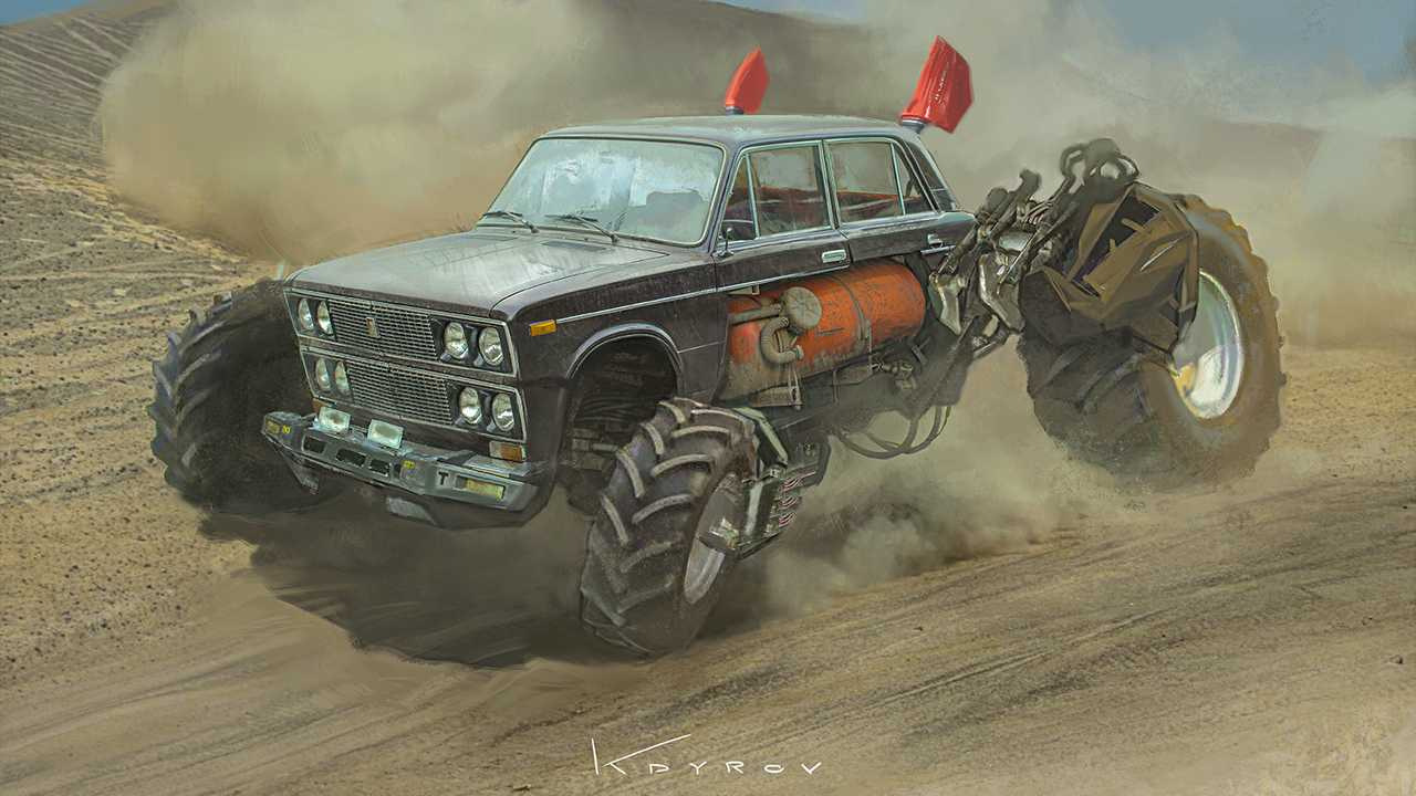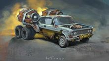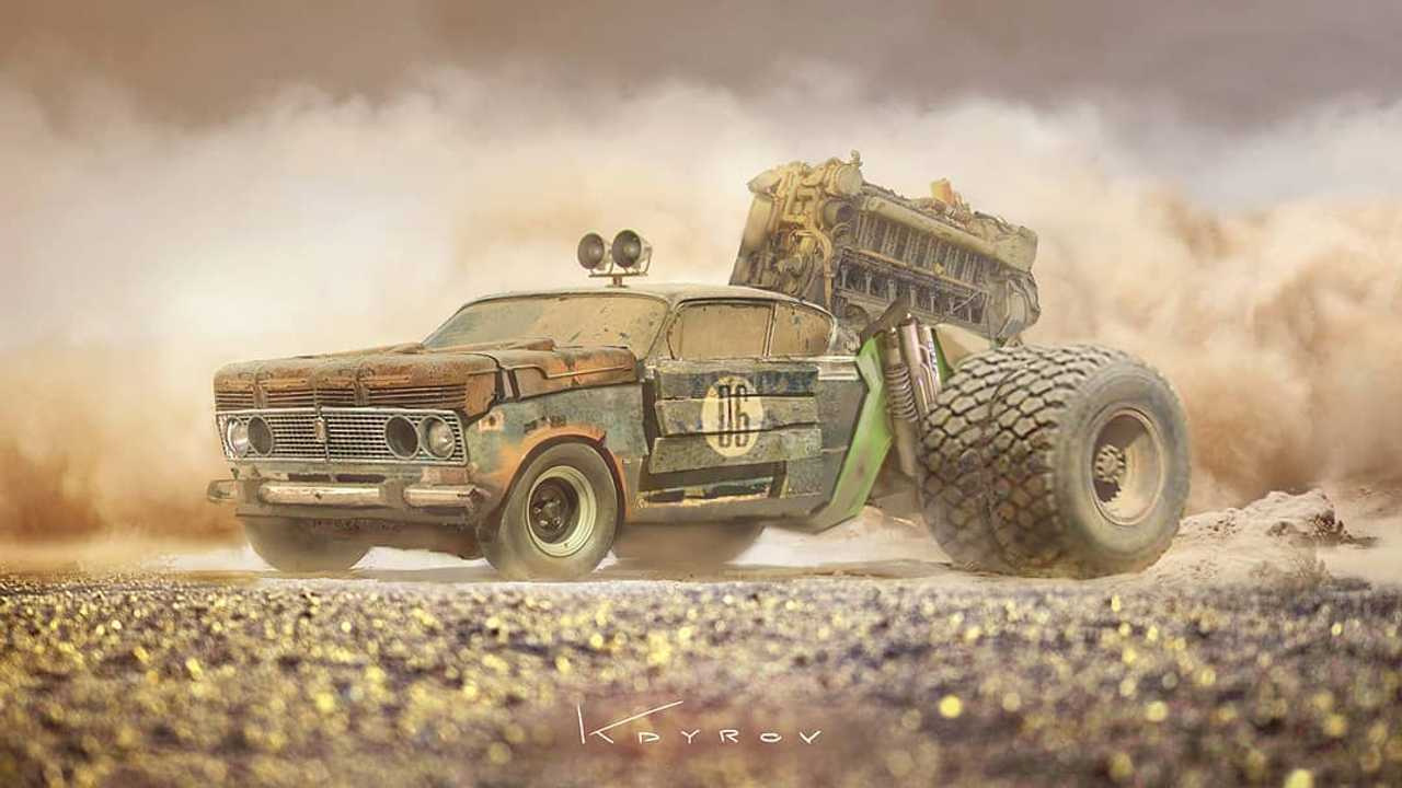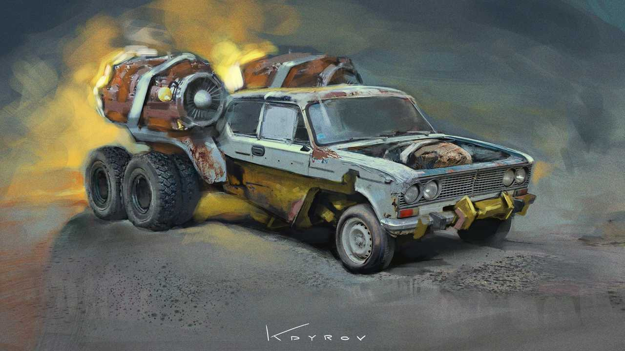 Сегодня я хочу показать вам серию работ талантливого парня из Алматы, Казахстан, по имени Данияр Кдыров. В 2004 году он окончил факультет «Живописи и скульптуры» Казахской национальной академии искусств и регулярно пополняет своё портфолио новыми работами с автомобилями постапокалипсиса.