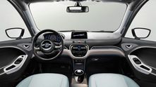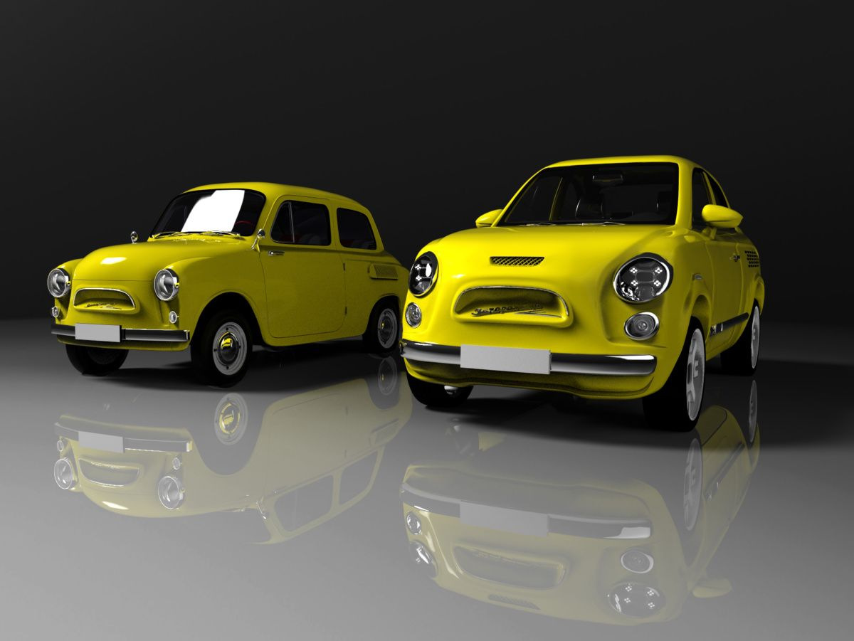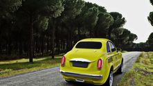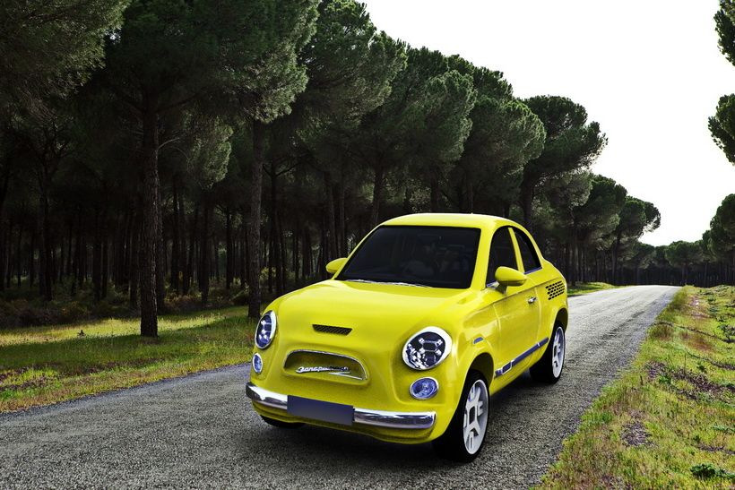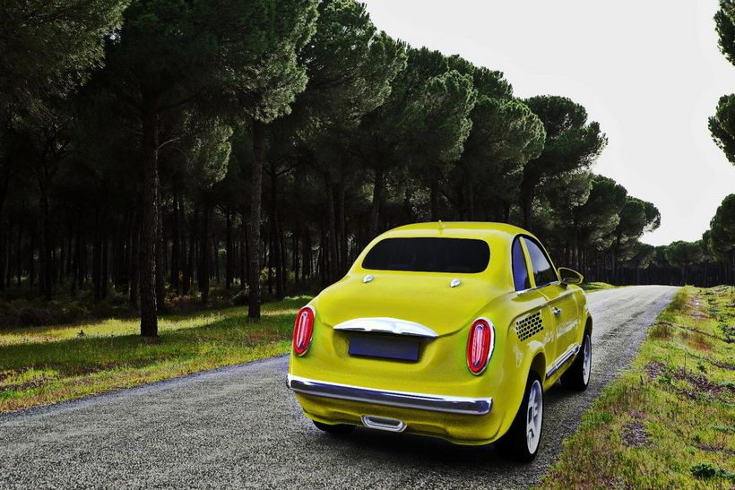 Роман не ограничился созданием внешнего вида автомобиля, а поработал также над интерьером малютки. Он чем-то напоминает современные салоны автомобилей Fiat, а в глаза бросаются двухспицевое рулевое колесо, цветной дисплей по центру, комбинация приборов в ретро стиле. Дополняет образ горизонтальная линия с плавным загибом вниз, которая функционально стилизована под центральные и боковые воздуходувы.
