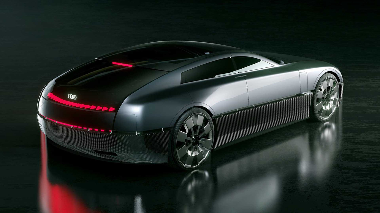 Спереди нас встречает фирменный логотип Audi с подсветкой, а также квартет круглых светодиодных фар, интегрированных в передний бампер. Совершенно потрясающе выглядит выштамповка, которая разделяет весь автомобиль на две части. Не только спереди, но и по бокам, и сзади. Кажется, что нижняя часть имеет вид из углеродного волокна, а камеры заднего вида встроены в боковой паз.