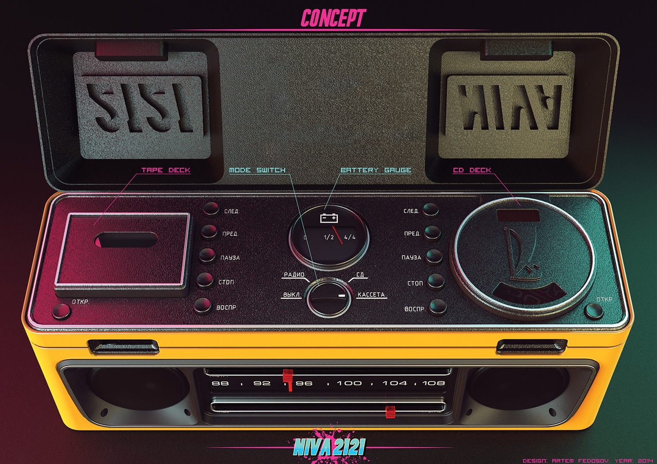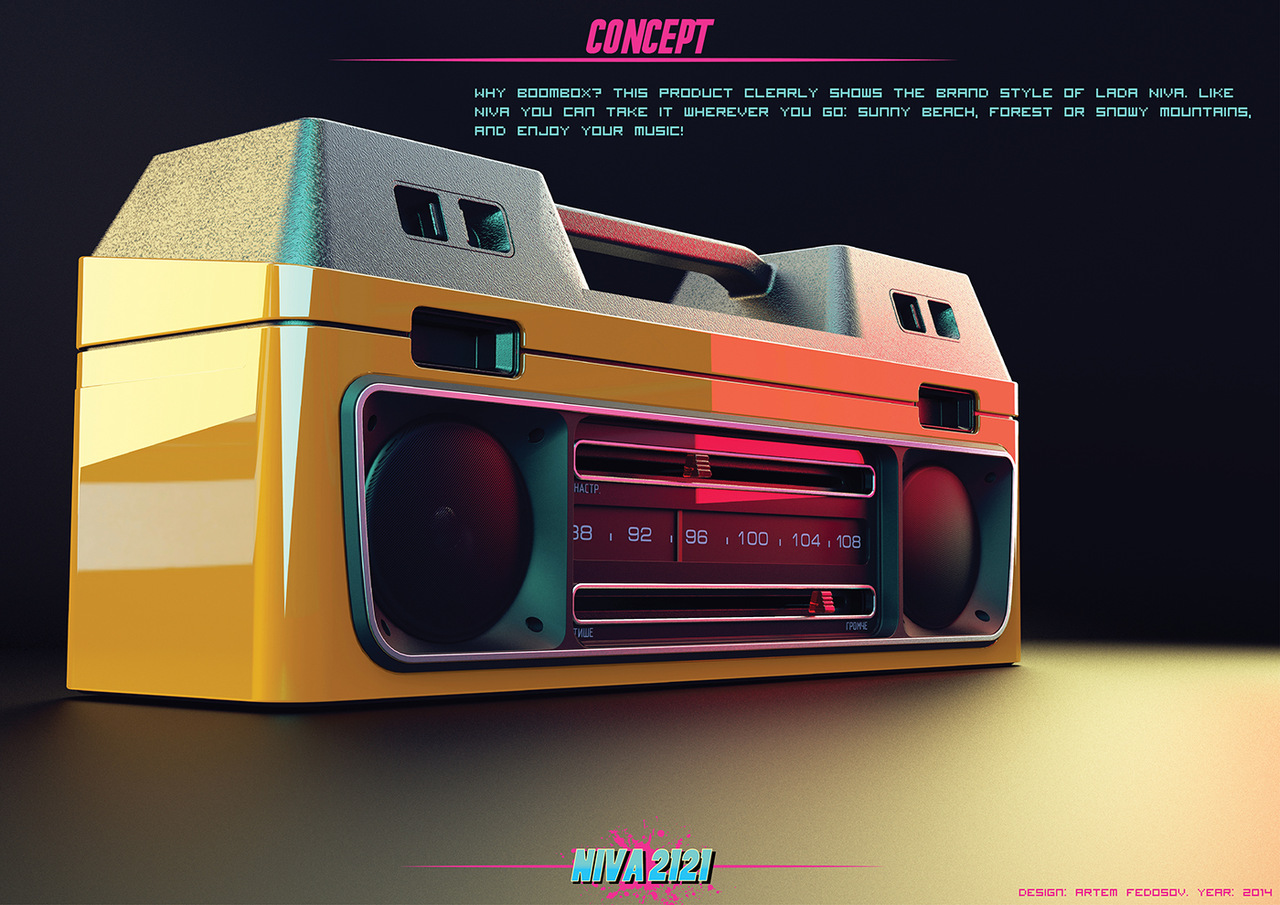 Продуктовый дизайнер Артем Федосов на своей странице на портале Behance опубликовал скрины дизайн-проекта невероятно стильного бумбокса, созданного по мотивам передней части легендарного ВАЗ-2121 Нива. Собственно, он так и называется - NIVA BOOMBOX.