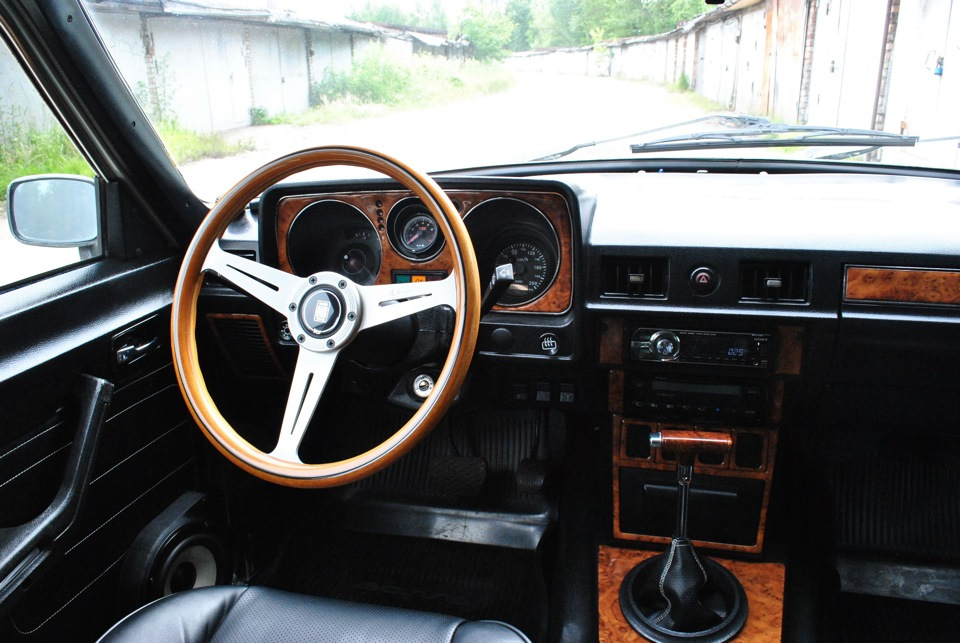 Оставалось поработать над мелочами: установлена линзовая оптика, штатное рулевое колесо заменили на Nardi с деревянным ободом, спортивные ковши спереди, потолок обшит настоящей алькантарой.
