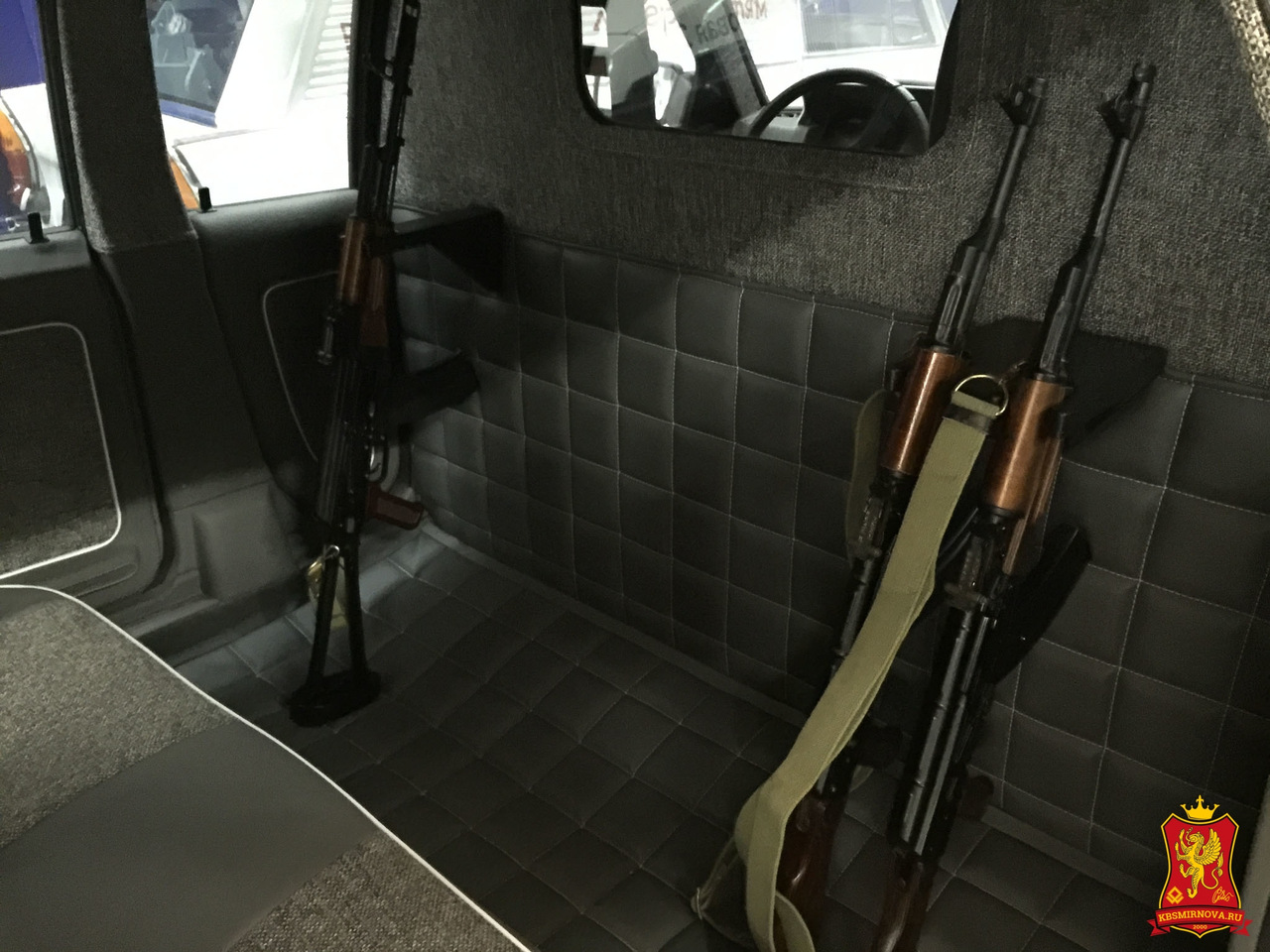 Так, место в кузове занял полностью изолированный бронеотсек для перевозки заключённых, установлена рация, громкоговорящее устройство, светозвуковая панель на крыше и ложементы для служебного автоматического оружия.
