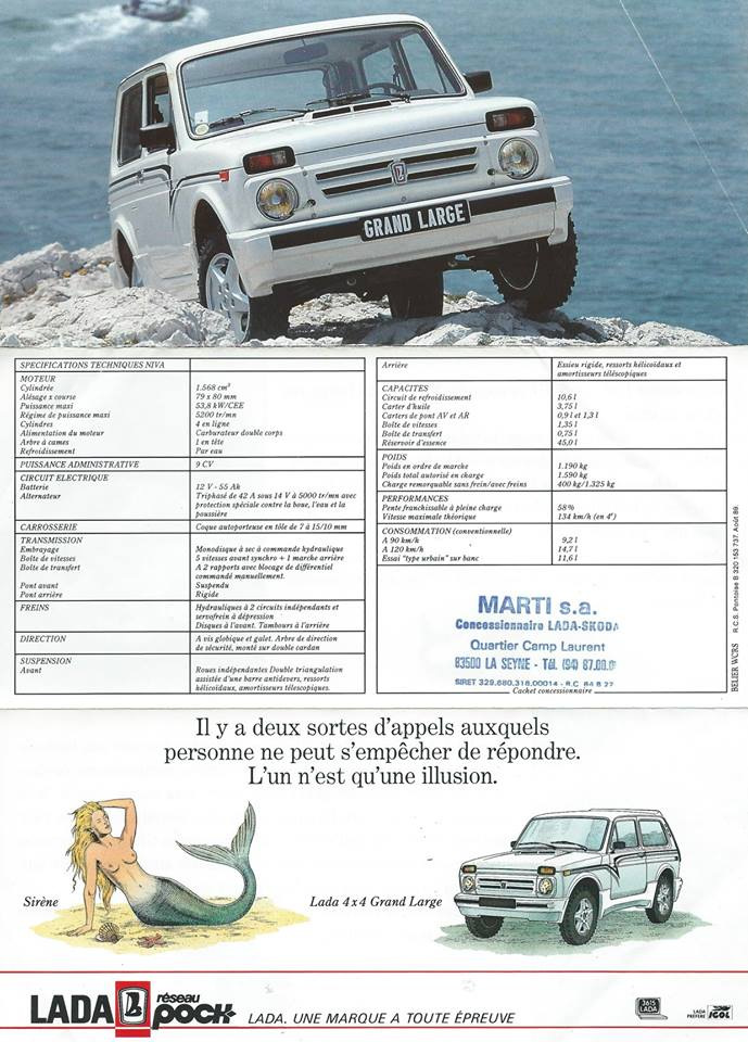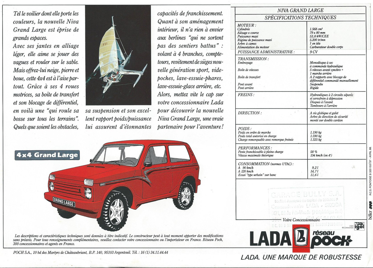 В 1992 году Lada Niva Grande Large стоил 71 900 франков, в то время как за стандартную версию просили 59 900 франков. Неизвестно сколько таких версий было сделано, но их количество было очень незначительным.