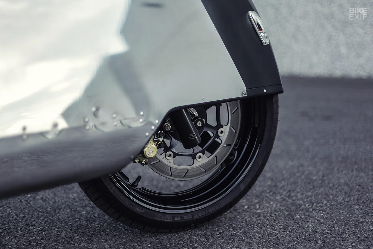 Оригинальные колеса 13"/14" были заменены более крупными 17-юймовыми combo: Suzuki GSF спереди и выполненным на заказ из алюминия с конструкцией из трех частей сзади. Новые колеса оснащены тормозной системой Brembo для большей надежности.