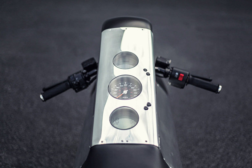Были сохранены оригинальные приборы Vectrix, но они стали расположены вертикально на приборной панели вместе с необходимыми кнопками.