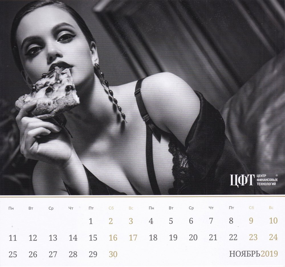 Центр финансовых технологий — группа инновационных компаний, работающих в области информационных технологий для финансового сектора. Уже не первый год ГК выпускает календарь, который совершенно никак не связан с финансами, зато наполнен фотографиями полуобнаженных красивых девушек.
