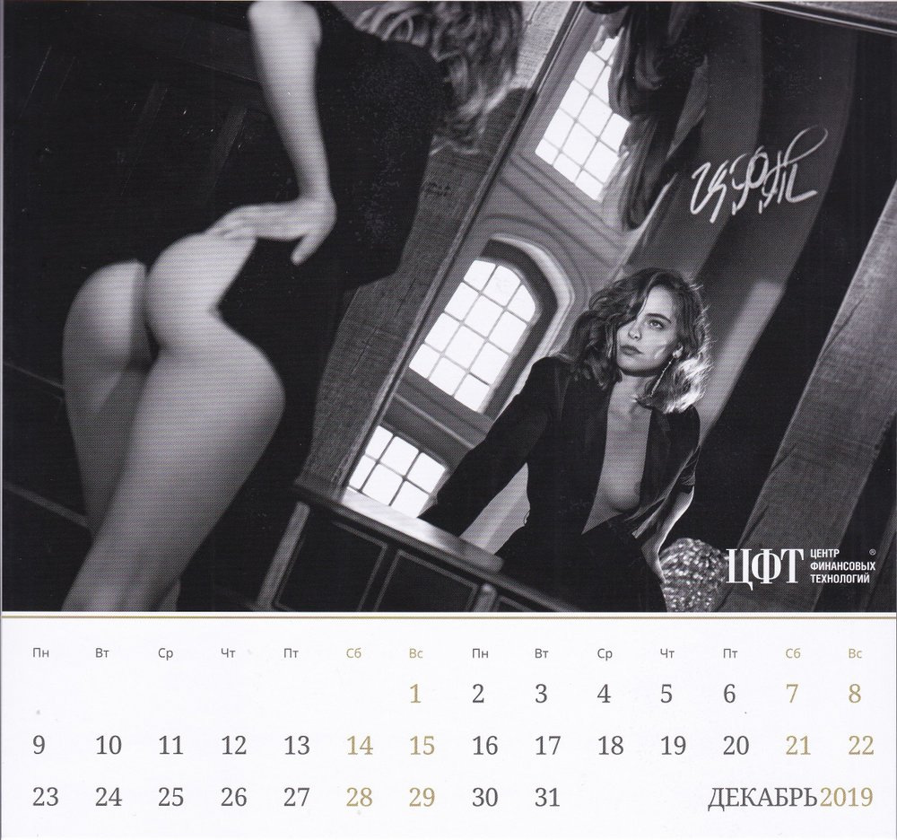 ЦФТ обычно дарит такую красоту только партнерам и друзьям, в продажу календарь не пускают. В этом году календарь получил дополненную реальность. Если на фото навести камеру приложения ЦФТ, то прекрасная девушка оживает и начинает двигаться под музыку. Правда перед этим вам придется скачать бесплатное приложение. Оно доступно для Apple и Android.