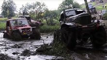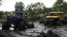 Мне всех больше понравился пикап в стиле Hummer H1 с двухрядной кабиной от ГАЗ-66, а также короткобазный багги с кабиной от ГАЗ-66, смещенной к задней оси. Их всех объединяет одно: огромные внедорожные колеса, которыми они перемалывают раскисшую глину.