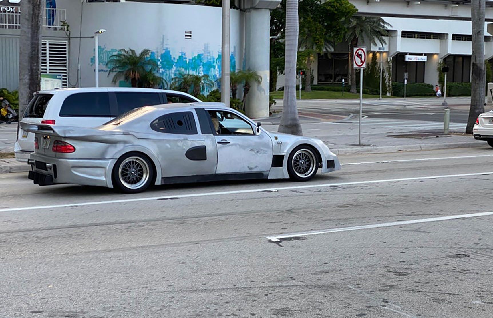 Мы уже рассказывали об этом творении раньше, только теперь его задние боковые «окна» выкрашены в черный цвет, а не в серебристый. Базовым автомобилем, похоже, является Mercedes-Benz E-класс поколения W210, который поделился некоторыми деталями с CLK GTR. У него те же фары, задние фонари и решетка радиатора, что и у настоящего автомобиля, а задние двери были заварены.