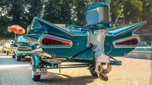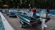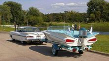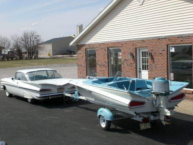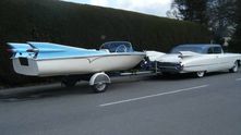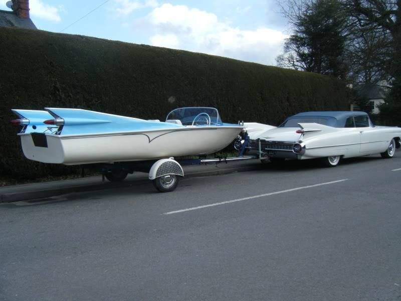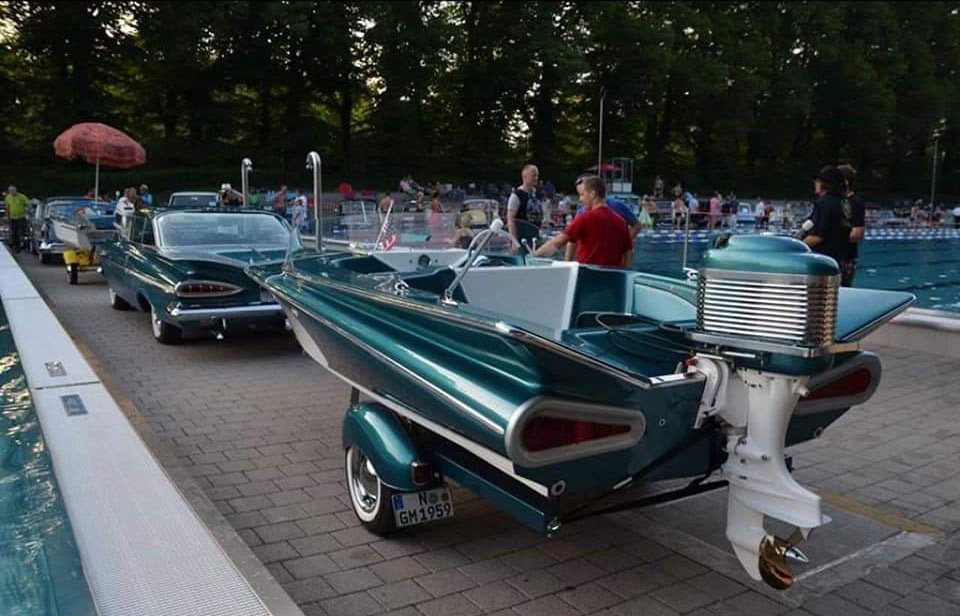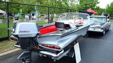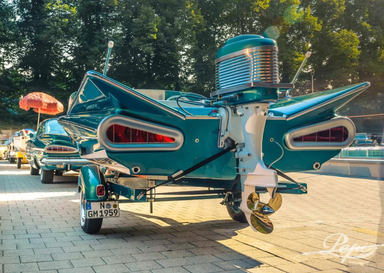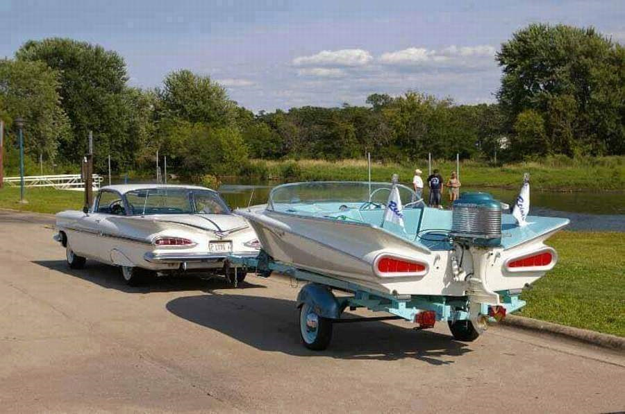 Популярной комбинацией стал Chevrolet Impala конца 50-х годов, который тянет лодку с задней частью, оформленной в том же стиле. И это не удивительно, ведь такая лодка в 60-е годы выпускалась серийно и называлась Reinell Jet Fligh.