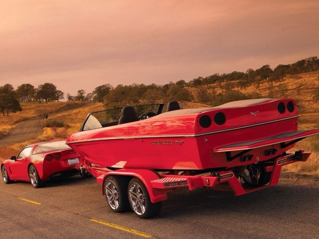 Среди современных автомобилей тоже есть примеры отличных сочетаний. Например, Chevrolet Corvette с крутейшим прогулочным катером, получившим две пары характерных задних фонарей.