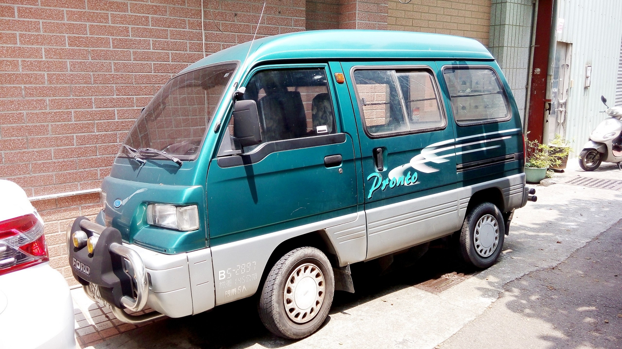 Ford Pronto начинался как довольно поверхностный ребейджинг, но в более поздних поколениях дизайнеры выбрали необычный и максимально практичный путь рестайлинга — фактически просто прилепили пластиковую «маску» на передок грузовичка. Выглядит так, будто фургон надел хэллоуинскую маску Бэтмена.
