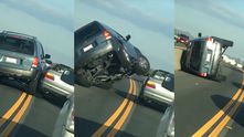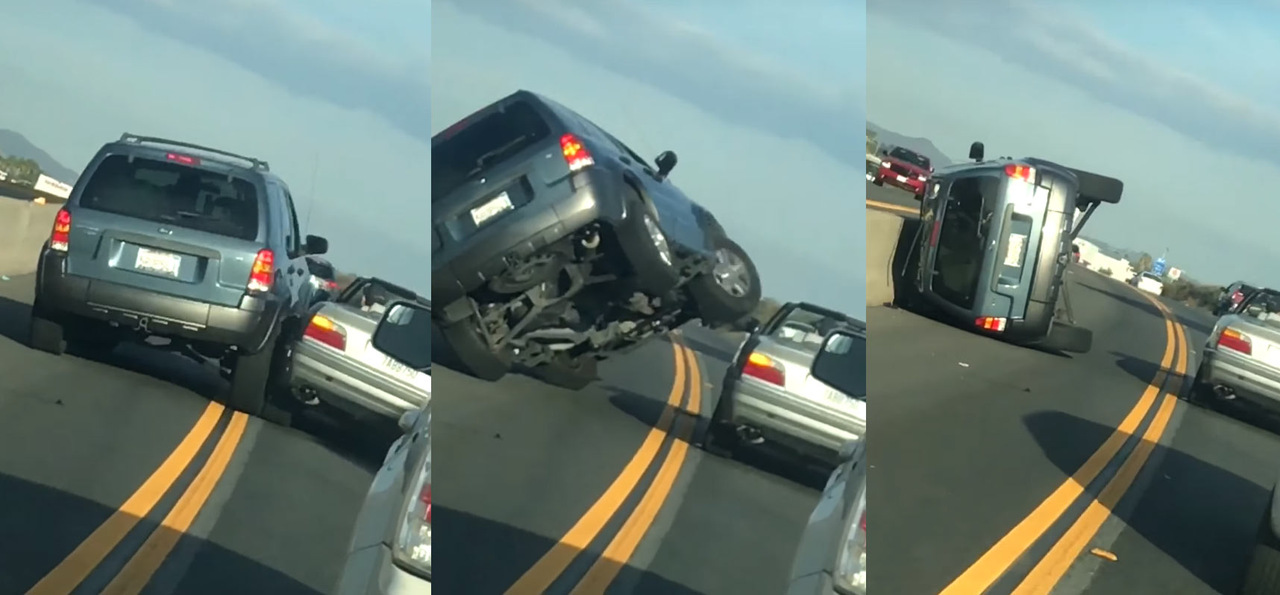 О, Боже! Запомните, когда вы плюёте кому-то в лицо, приготовьтесь к последствиям, ведь это самая низкая вещь из всех, что можно сделать с другим человеком. Водитель кроссовера захотел отомстить (а вы бы не захотели после такого?), но попытка оказалась крайне неудачной: кроссовер перевернулся на бок. Я никогда не видел ничего подобного, это ужасно.