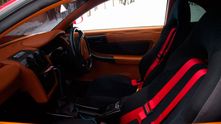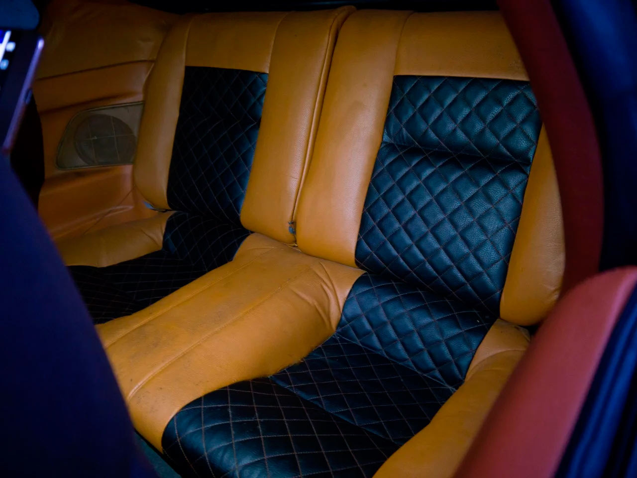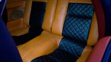 Создатели реплики также поработали над интерьером, наделив его фирменным итальянским стилем. Он отделан качественной кожей коричневого и черного цветов. Если бы не правое расположение руля... За передними сиденьями нашлось место для пары дополнительных мест для пассажиров.