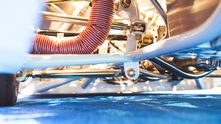 Заглянув под днище вы будете впечатлены не меньше, чем от подкапотного пространства. Ни одна деталь не осталась без усовершенствования. Остается только гадать, насколько точно и быстро эта малышка сможет проходить повороты гоночных треков. На результат также работает подвеска Öhlins.