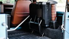 Интерьер также полностью соответствует оригинальному Defender. Тут есть четыре отдельных сиденья, коричневая кожаная обивка, алюминиевые тумблеры, кнопочный селектор переключения передач и кастомная центральная консоль с подстаканниками.
