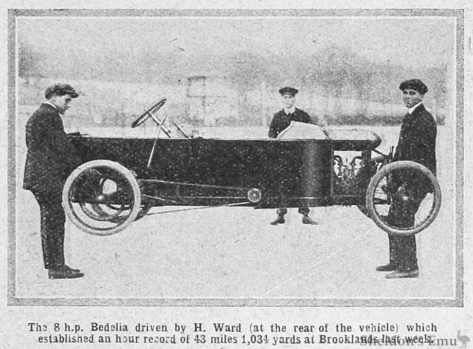 В выпуске Scientific American от 9 августа 1912 года на обложке изображена гоночная Bedelia, а принцип её работы описан довольно подробно: