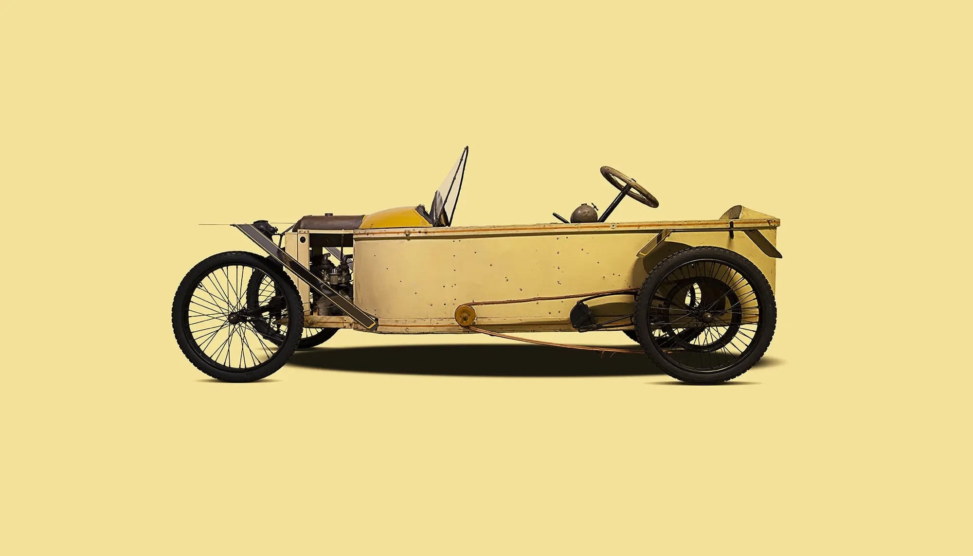 На раннем этапе развития автомобилестроения единственным реальным способом сделать машину доступной для тех, кто не разгуливал с мешками денег, было свести автомобиль к абсолютному минимуму: двигатель, колёса и место, где можно сидеть. Именно этим и были циклкары.