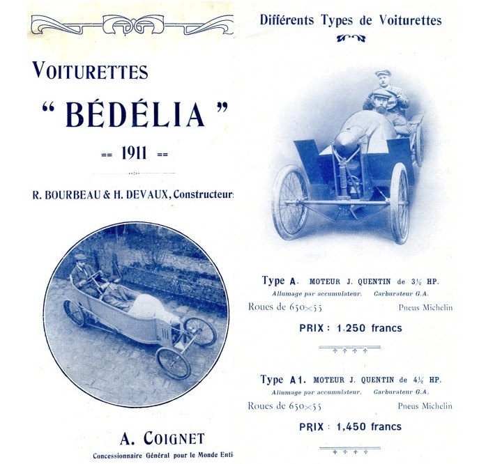 Во Франции примерно в 1910 году одним из первых, кто по-настоящему понял эту формулу — дешёвые машины создаются не уменьшением дорогих, а переиспользованием мотоциклетных компонентов и радикальным сокращением всего лишнего — был Робер Бурбо.