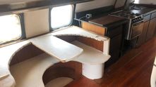 Откровенно говоря, интерьер автодома выглядит не так уж технологично и комфортабельно, как у современных кемперов. Зато внешне ему нет равных по оригинальности. Например, кто еще может похвастаться задней рампой самолета, приводящейся в движение электроприводом?
