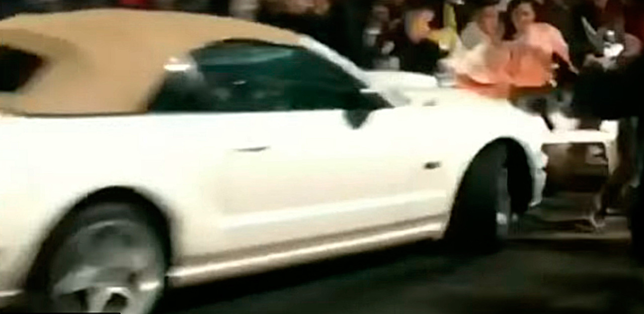 Этот инцидент произошел в Калифорнии, и, как вы видите на видео, Mustang Convertible накручивал круги, когда водитель потерял контроль и въехал в толпу зрителей.