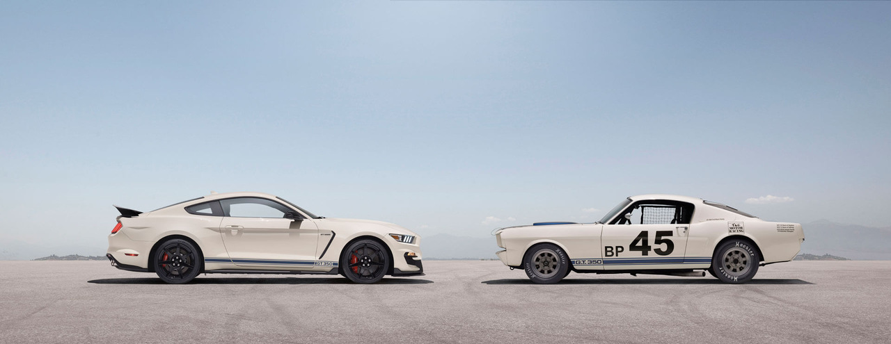 Heritage Edition Package подразумевает окраску кузова в белый цвет Wimbledon White с синими гоночными полосами цвета Guardsman Blue (с 1950-х годов в качестве национальных гоночных цветов в США были выбраны белый и синий). В пакет входят также специальные эмблемы в синем цвете на радиаторной решетке и сзади, а также уникальный логотип в салоне. Кроме того, для модели GT350R устанавливаются черные кожаные сиденья с красной акцентной строчкой.