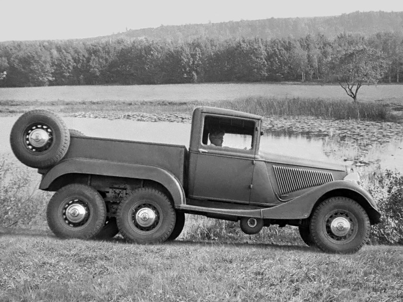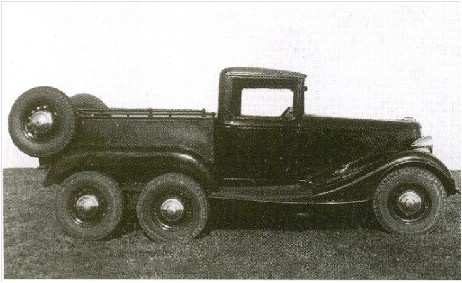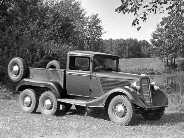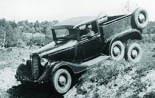 В 1934 году на основе первого прототипа Горьковский автозавод освоил серийное производство трехосного ГАЗ-ААА. Грузоподъемность машины выросла до двух тонн, а вот проходимость повысилась несущественно. Двускатные шины на задних ведущих мостах не способствовали движению по бездорожью.