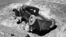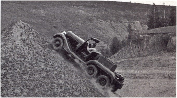 Фотографии, сделанные на испытаниях ГАЗ-21 на бездорожье, и сегодня впечатляют. Опытный автомобиль снимали в моменты преодоления нешуточных косогоров, ям и буераков. Эффектности снимкам добавляет запечатленная на них работа подвесок, позволявших выворачивать ведущие задние мосты друг относительно друга и относительно рамы под вызывающими уважение углами и подвешивать передний мост в воздухе. Правда, на практике все было не так здорово.