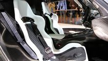 Салон также получил ряд новых технологий. Два небольших тач-скрина встроены в рулевое колесо. Они могут контролировать все, от звука до высоты дорожного просвета. Карбоновые ковши обшиты кожей и алькантарой с контрастной прострочкой.