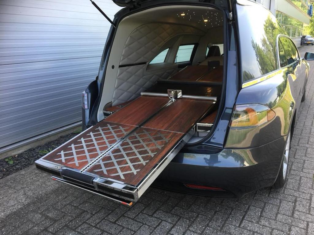 Ателье Huiskamp Carrosseriefabriek также проделало огромную работу в салоне катафалка. Внутри – царство кожи и дерева, а потолок «звёздное небо» отсылает нас к автомобилям Rolls-Royce. Финальная поездка покойного может пройти в размеренном режиме, или экстремально быстро с включенным режимом Ludicrous.