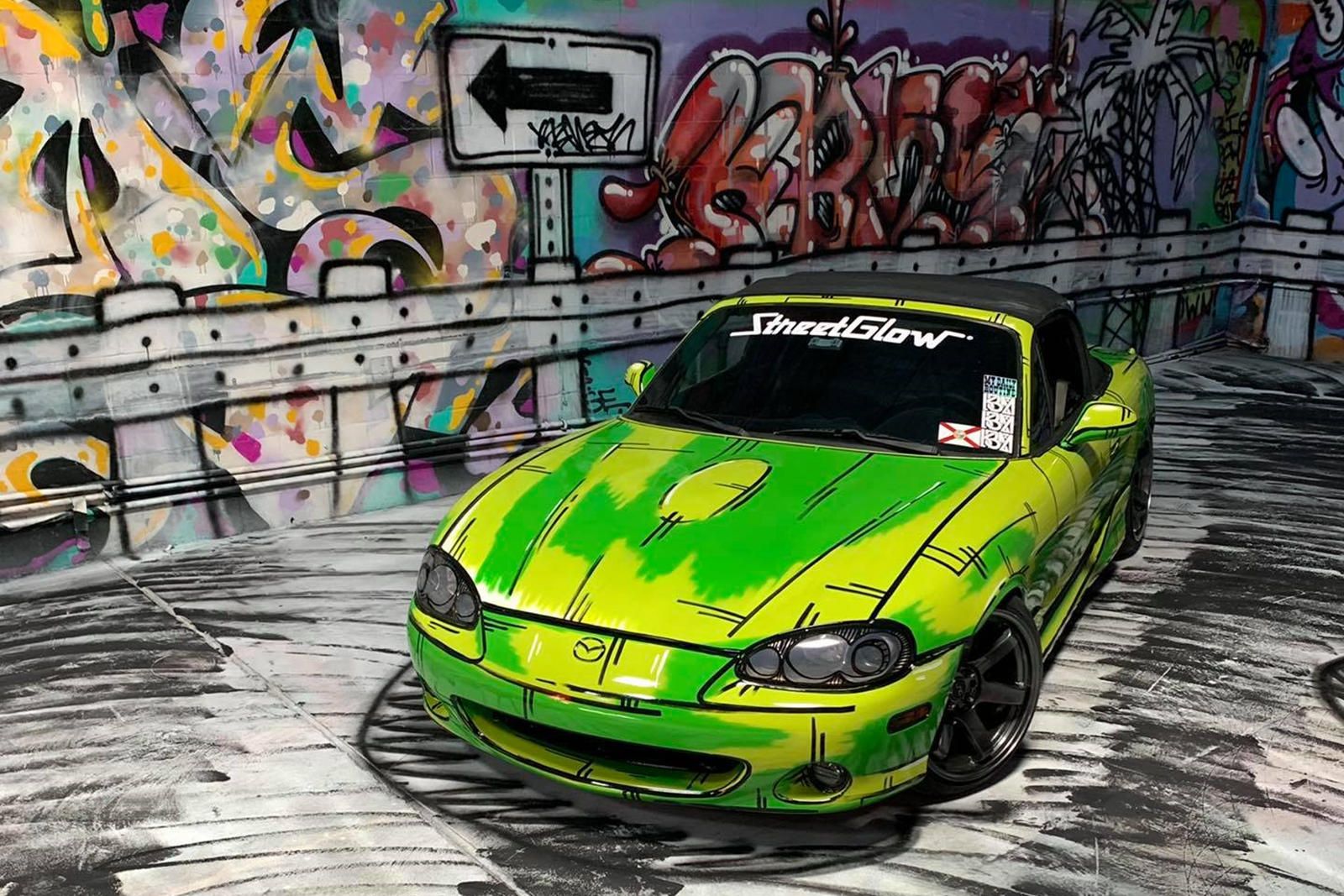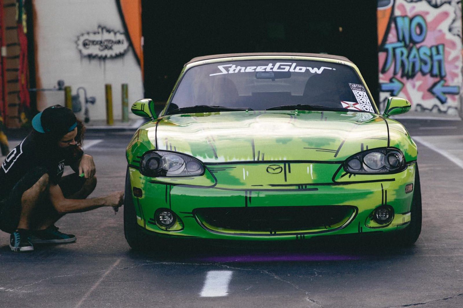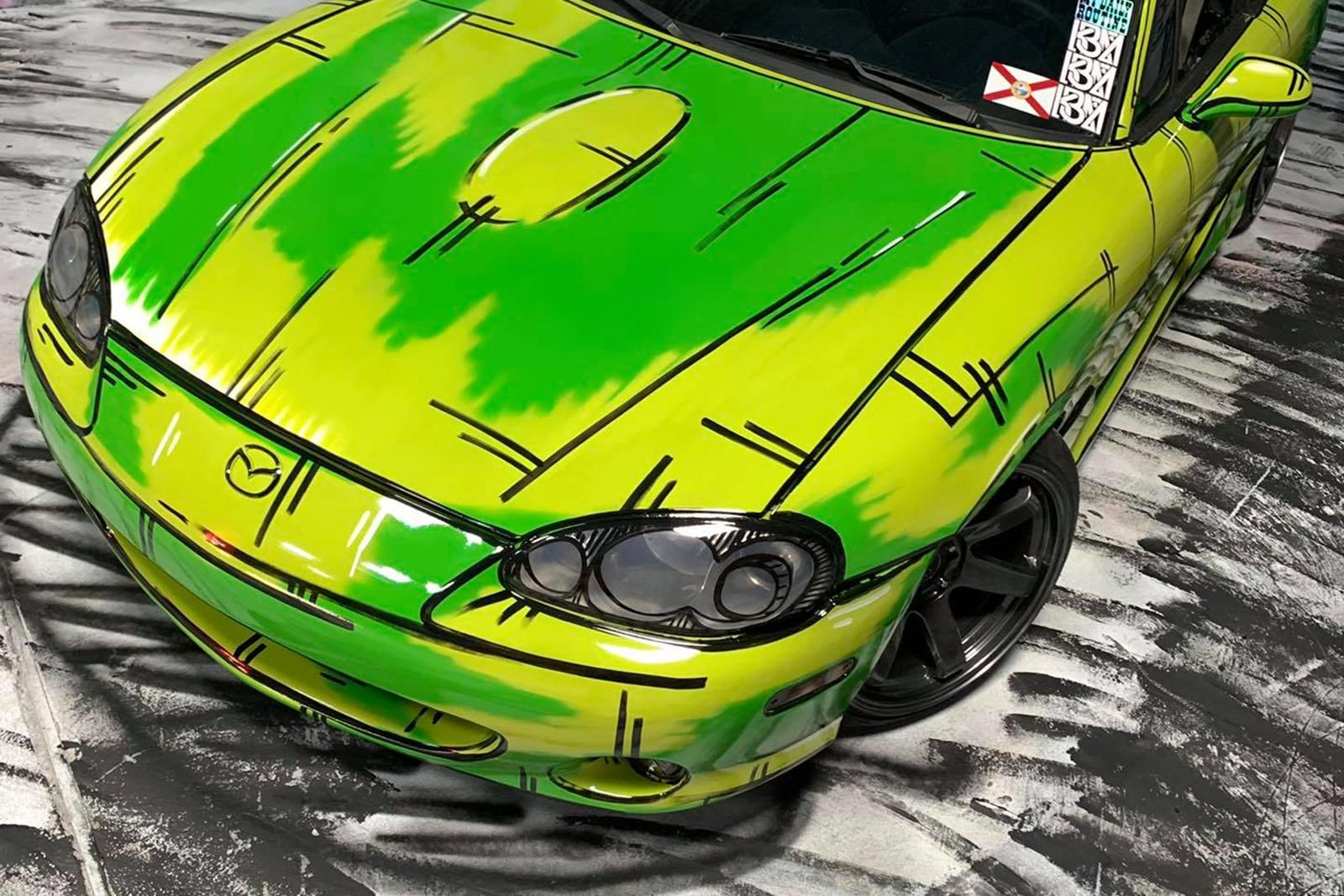 Художник-граффитист Кайл Брайс Монтейро, известный под псевдонимом «KBMER», уже неоднократно необычным образом раскрашивал автомобили. Его последней работой стала покраска собственного родстера Mazda MX-5.