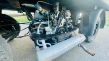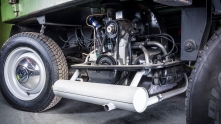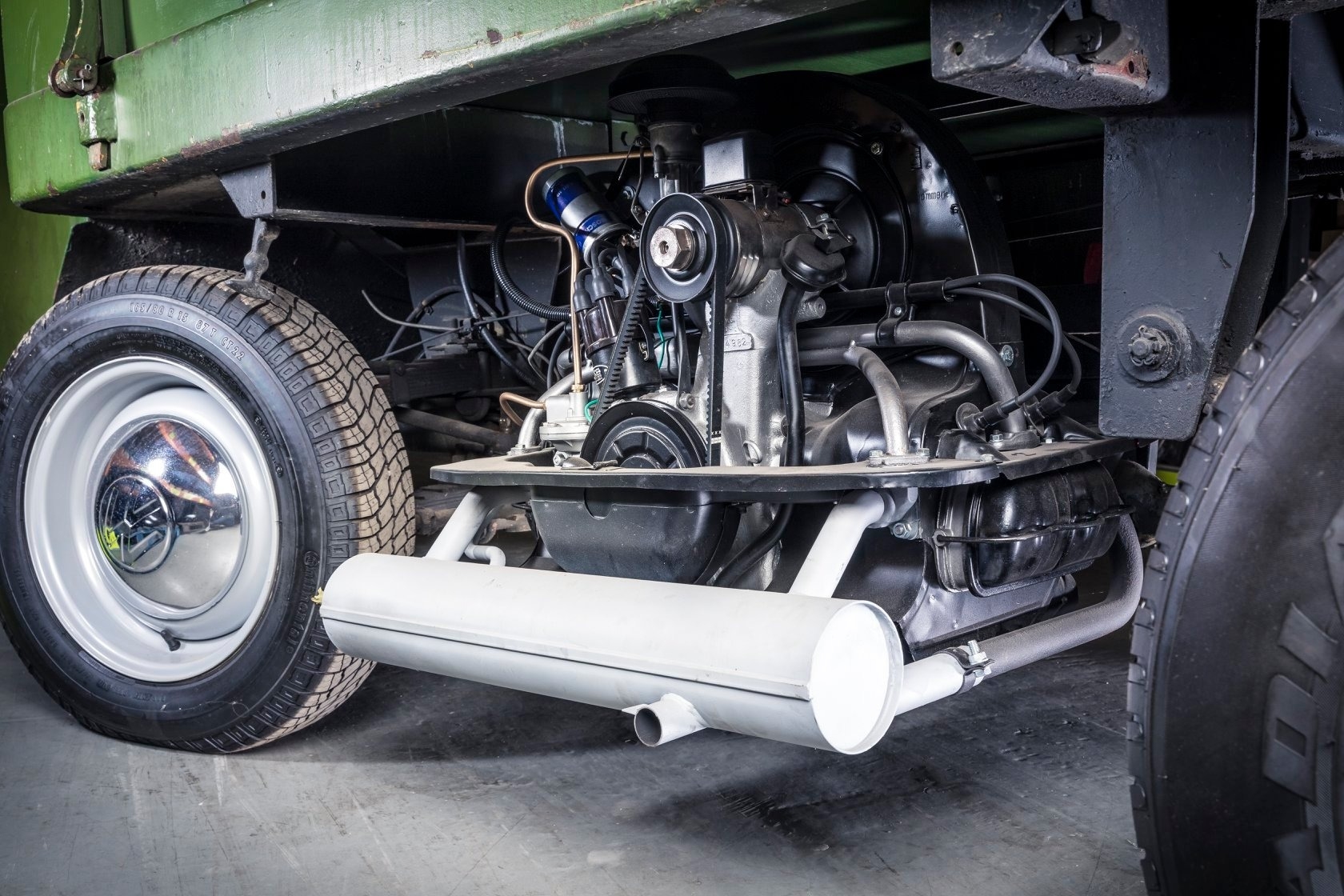 Невозможно не отметить, насколько необычно выглядит сам двигатель: он буквально висит под грузовой платформой, между колёсами, установленный поперечно. Вероятно, это единственный в своём роде автомобиль с поперечным среднемоторным расположением и задним приводом, оснащённый двигателем Volkswagen с воздушным охлаждением.