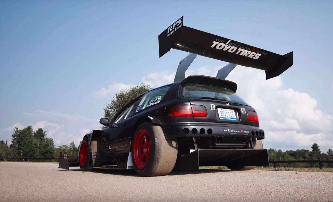 Среди гоночных автомобилей, основанных на серийных моделях, трудно найти более безумные творения, чем те, которые участвуют в скоростном подъеме на холм (hillclimb). Посмотрите, хотя бы, на этот поистине сногсшибательный Honda Civic, который получил массу гоночных модификаций.